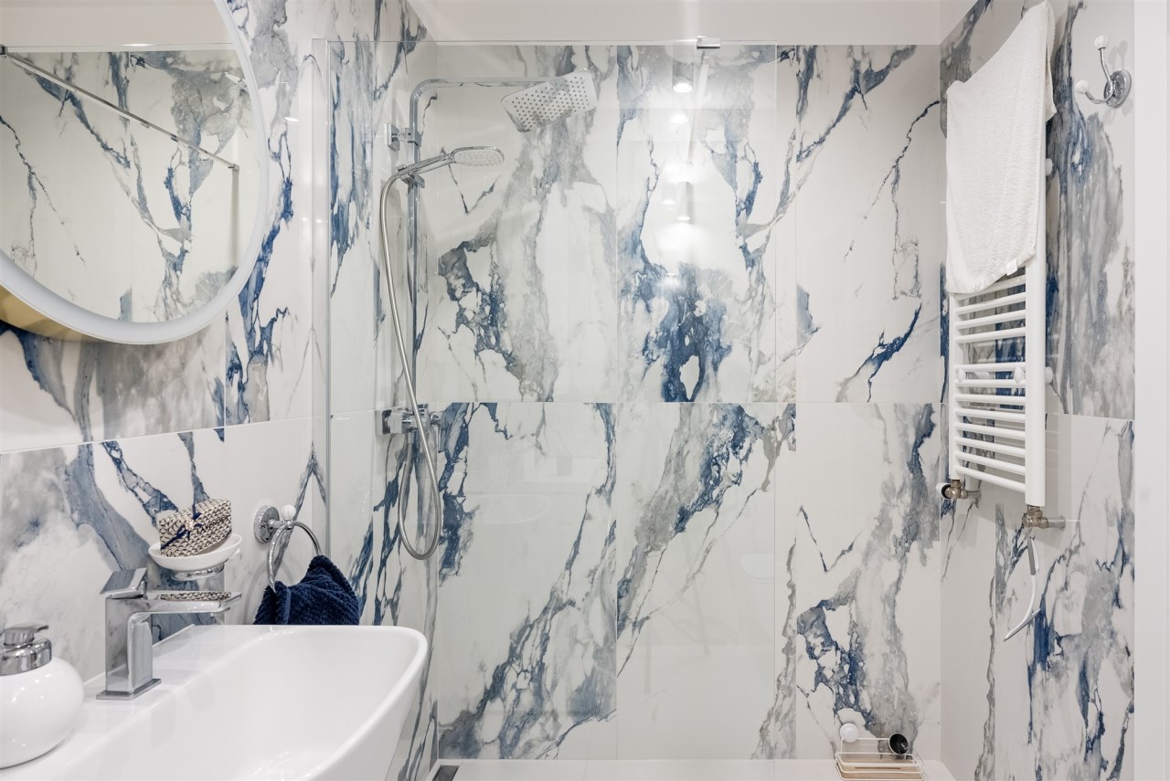 - nowoczesną łazienkę z WC wyposażoną w kabinę prysznicową oraz pralkę